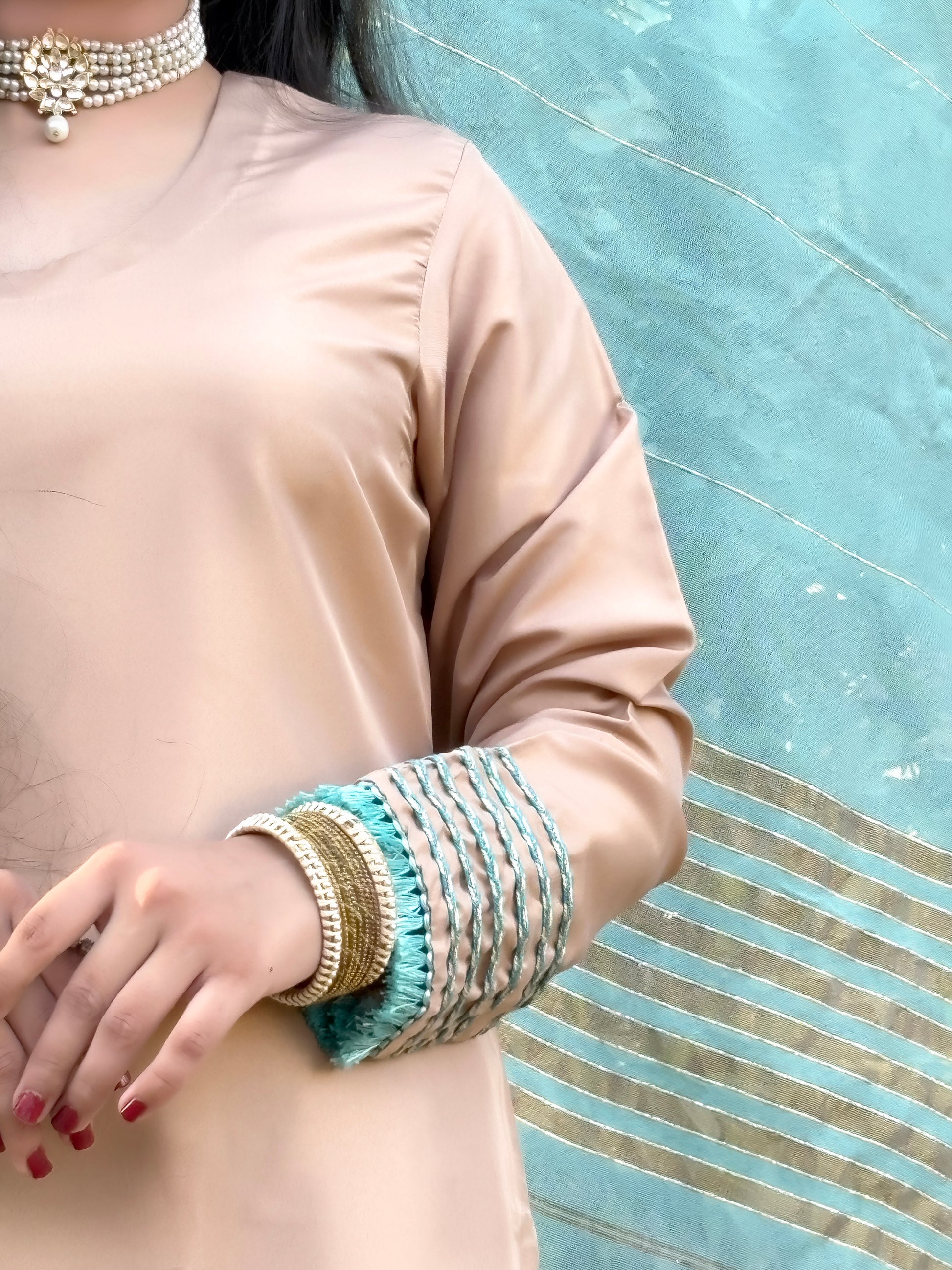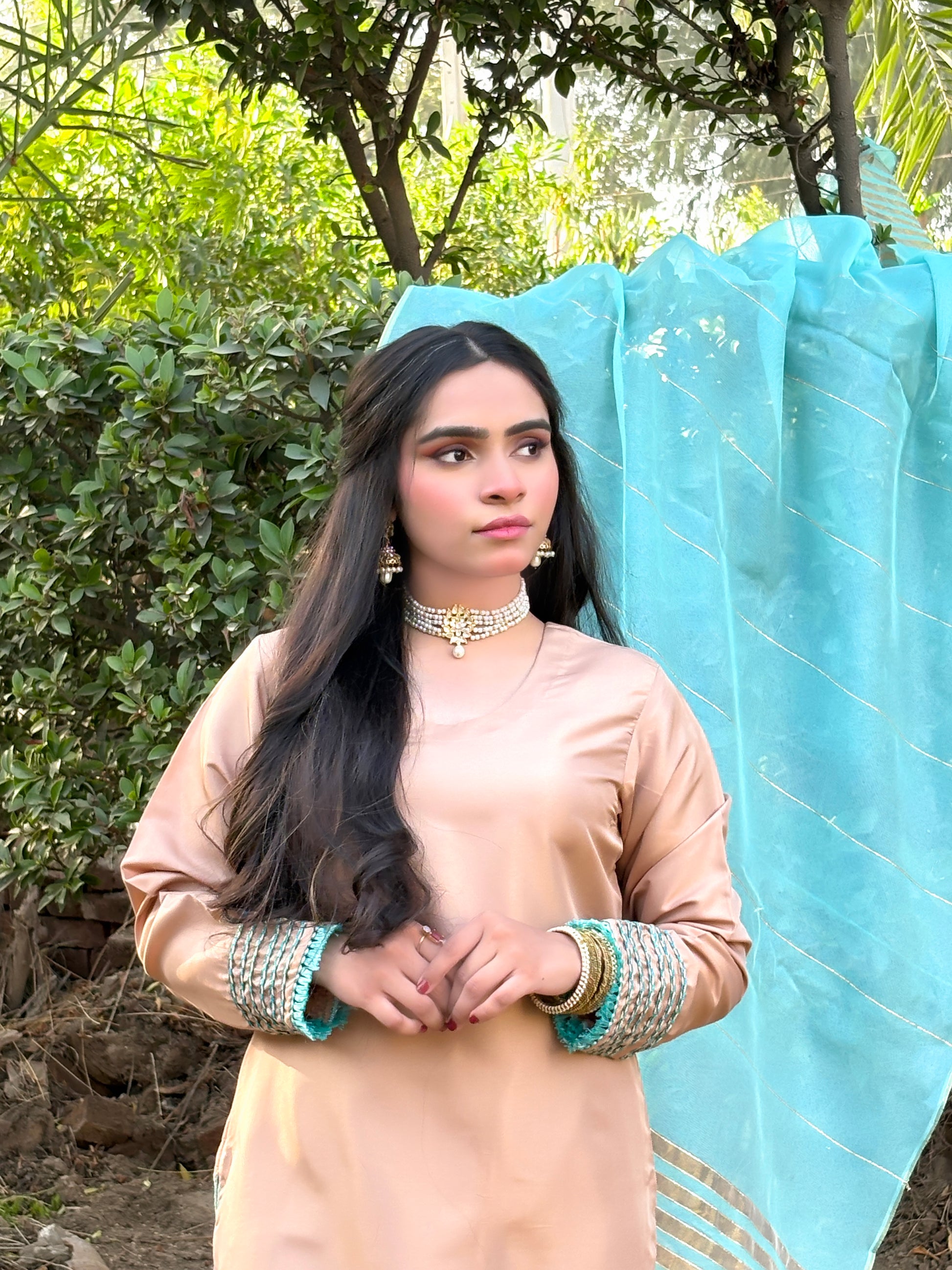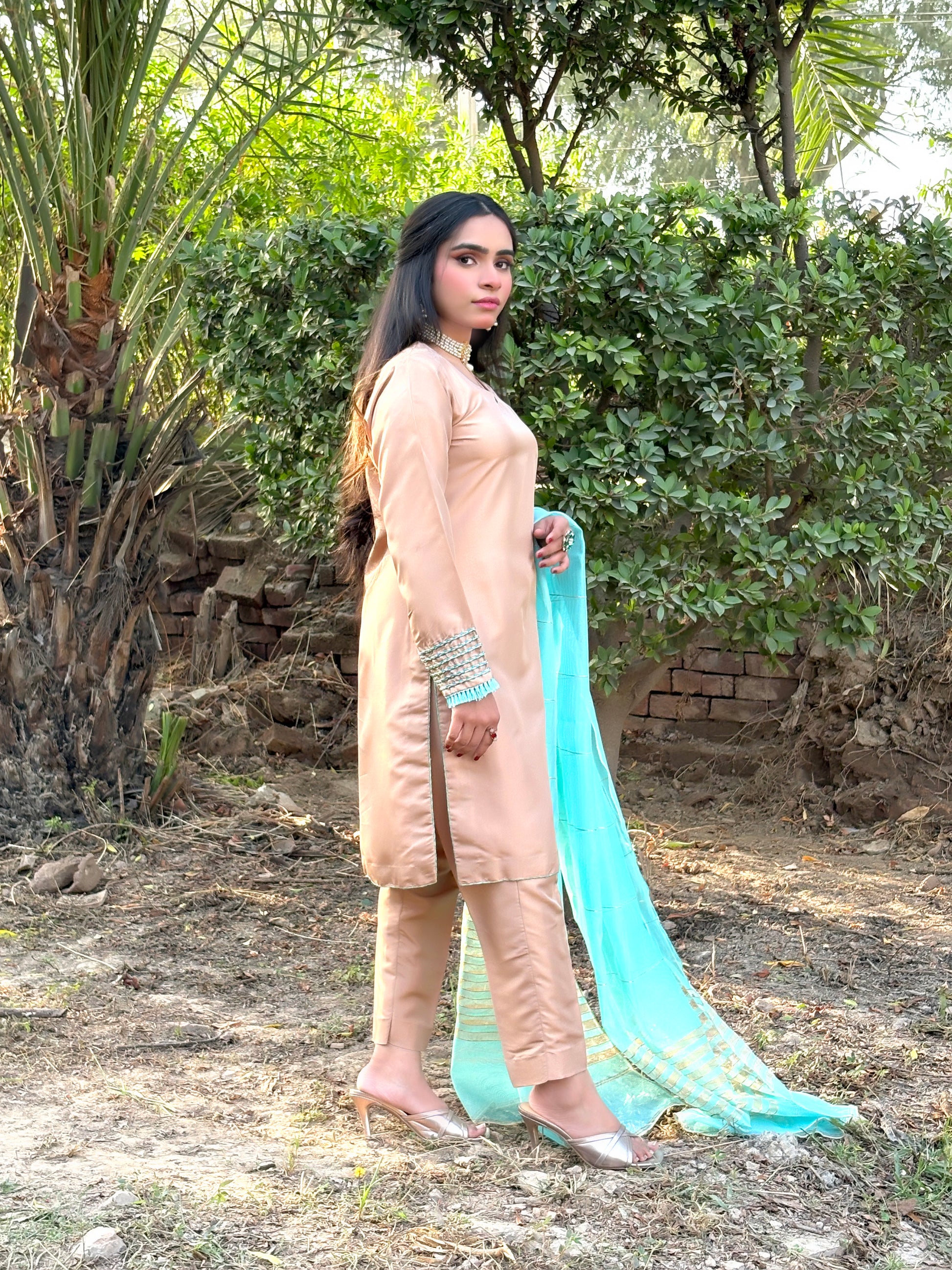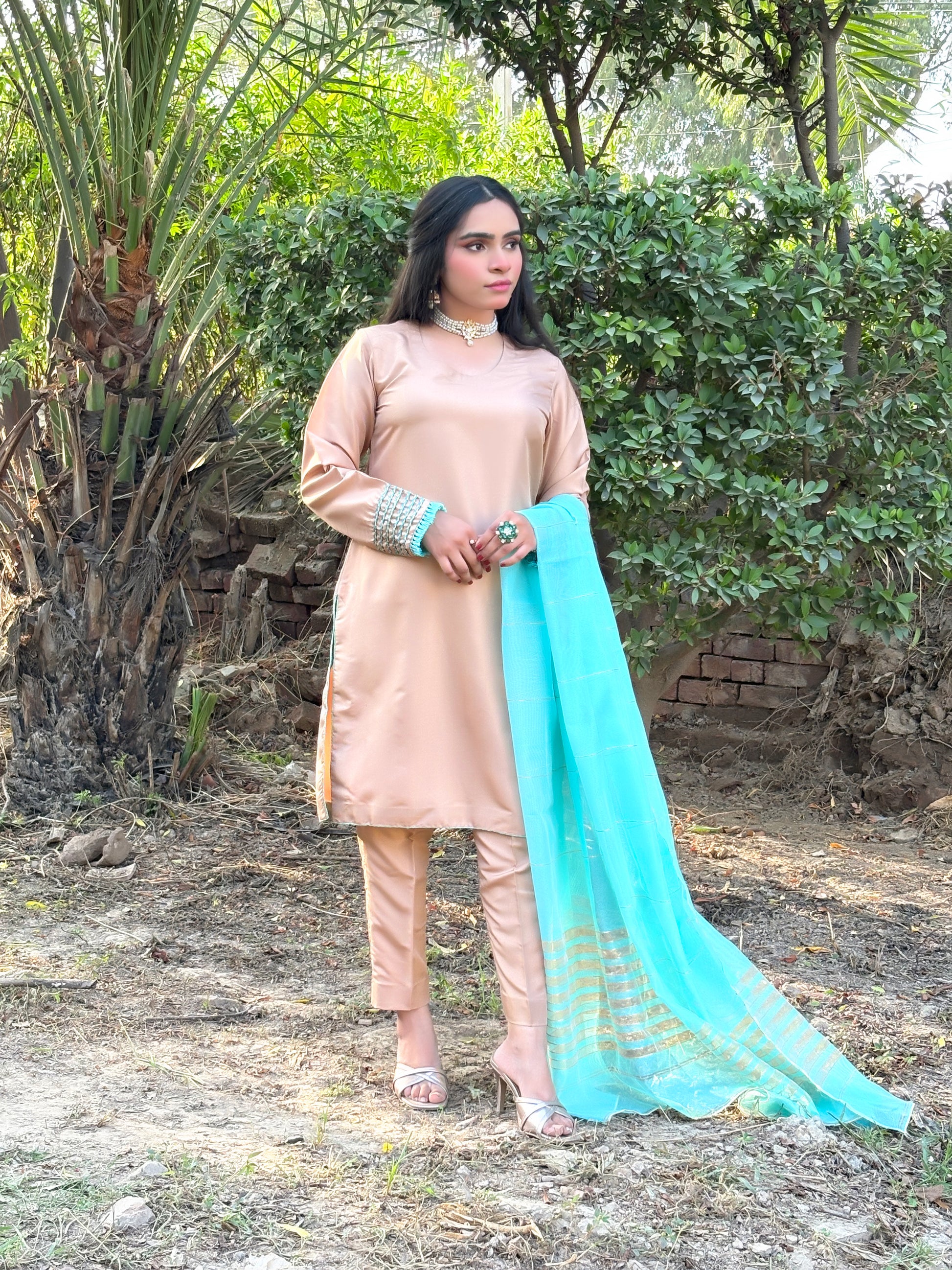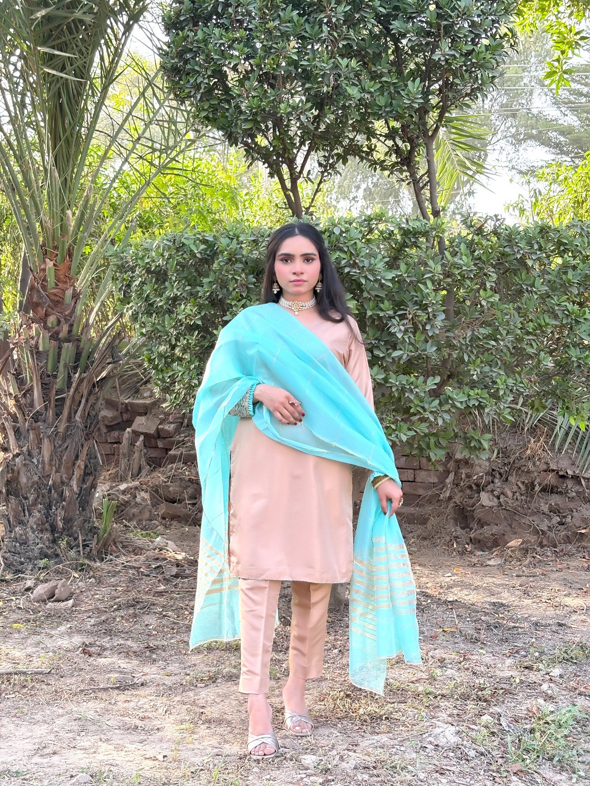 Color: aqua skin Shirt & Trousers with an Aqua Blue Dupatta